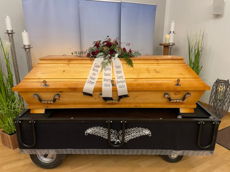 Trauerandacht zur Einäscherung mit Trägern, Friedhof Hage