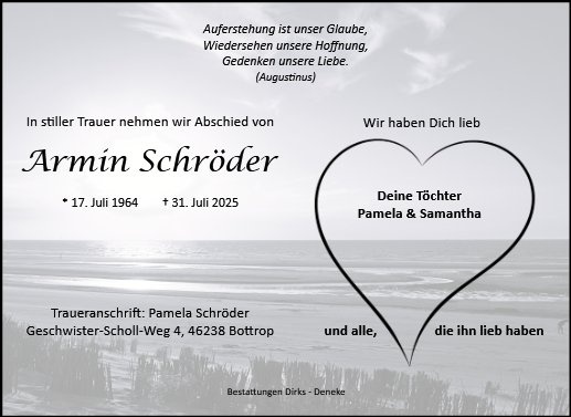 für die bevorstehende Zeit wünschen wir Ihnen von Herzen viel Kraft. Möge es Ihnen gelingen, mit Dankbarkeit auf die schönen gemeinsamen Erinnerungen zurückzublicken. Diese Gedenkseite soll Ihnen dabei helfen, Ihre Trauer zu teilen und das Andenken in liebevoller Gemeinschaft lebendig zu halten.