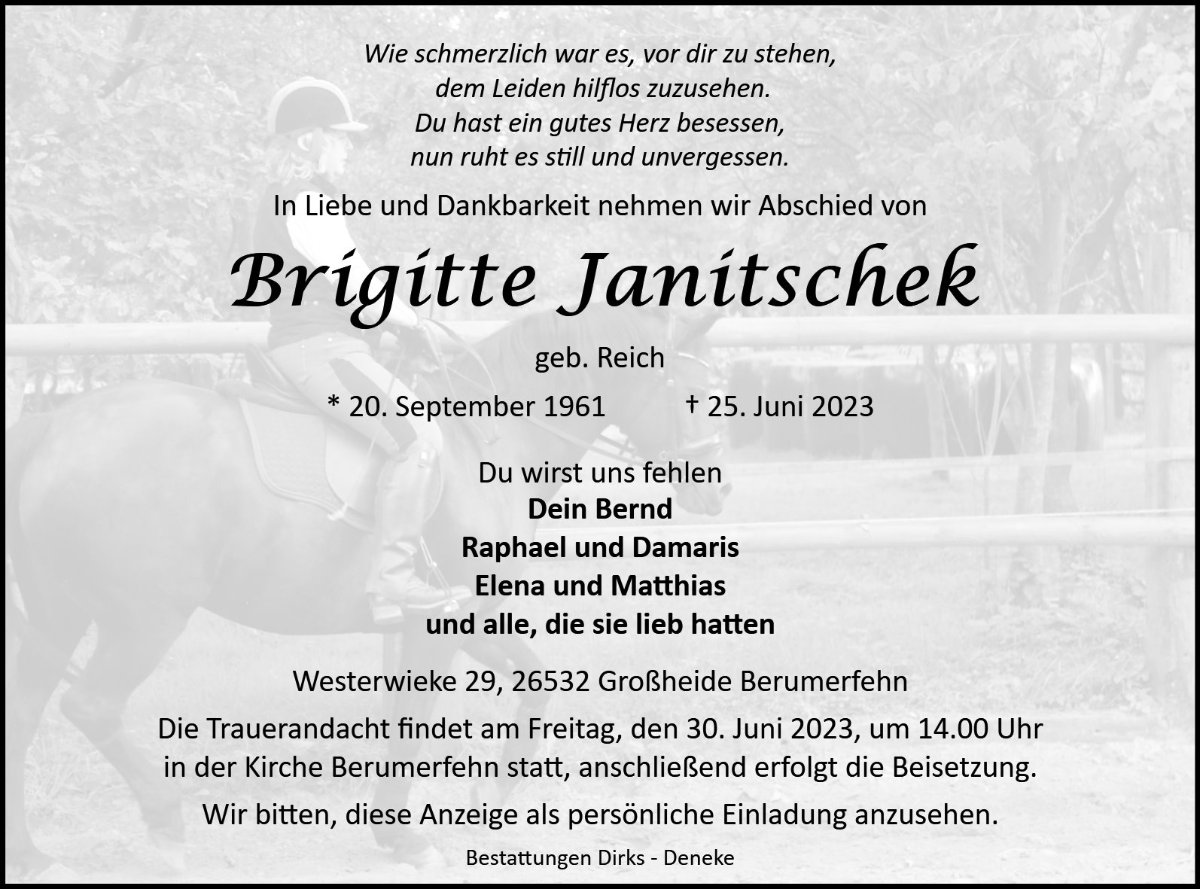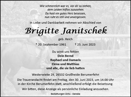 ich habe es gerade erst durch einen Zufall erfahren und möchte Dir mein tief empfundenes Beileid aussprechen. Die Nachricht vom Tod Deiner geliebten Brigitte hat mich sehr bewegt.