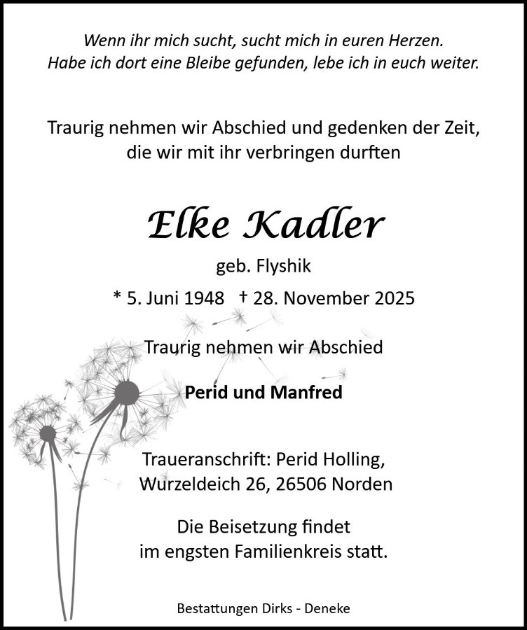 Elke Kadlergestorben am 28. November 2025