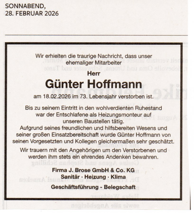 Mittwoch, 25. Februar 2026 15.00 Uhr