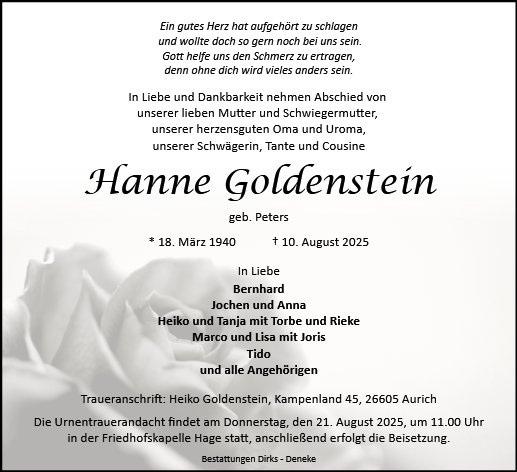 in diesen schweren Tagen fühlen wir zutiefst mit Ihnen und wünschen Ihnen von Herzen, dass Ihnen die glücklichen Erinnerungen Trost spenden und Kraft schenken, um zuversichtlich nach vorn zu blicken. Möge diese Gedenkseite Ihnen dabei helfen, Ihre Trauer zu teilen und das Andenken gemeinsam in liebevoller Erinnerung wachzuhalten.