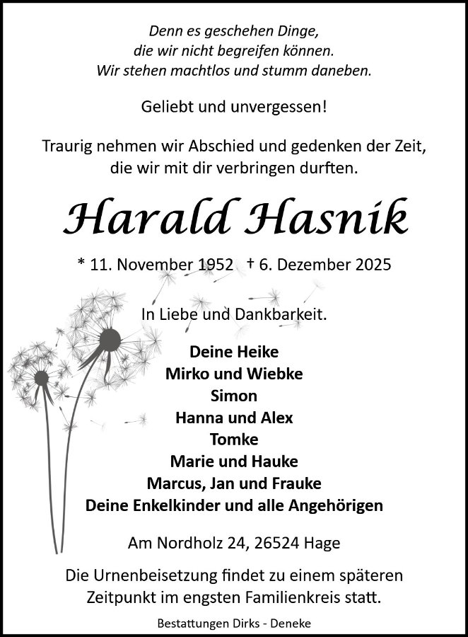 Harald Hasnikgestorben am 6. Dezember 2025
