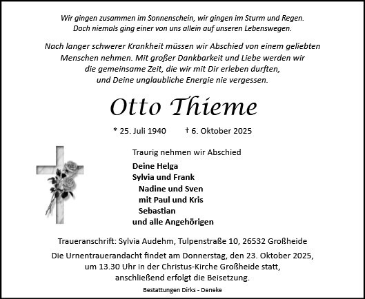 für die bevorstehende Zeit wünschen wir Ihnen von Herzen viel Kraft. Möge es Ihnen gelingen, mit Dankbarkeit auf die schönen gemeinsamen Erinnerungen zurückzublicken. Diese Gedenkseite soll Ihnen dabei helfen, Ihre Trauer zu teilen und das Andenken in liebevoller Gemeinschaft lebendig zu halten.